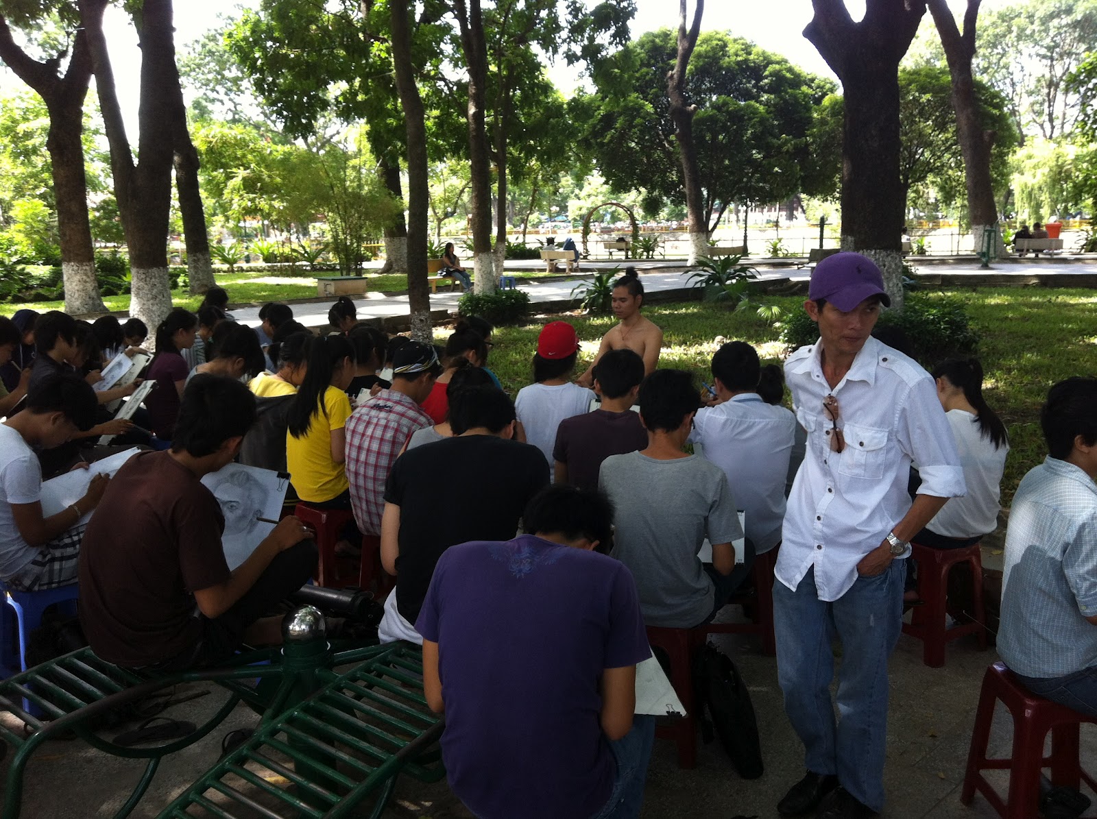 What better place to have an art class... than at the picture-perfect park ! As if my favorite park wanted to prove to me that it would never cease to surprise me with delightful scenes, I came across this art class zealously sketching the portrait of a stoic-looking gentleman with his shirt off, and a head statue. I was just finishing off my jog at about 9:40 am.
